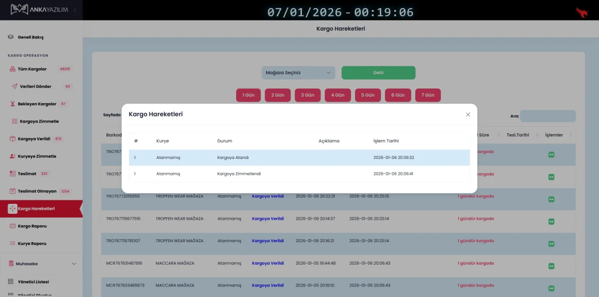 • 📌 Kargo Atama ve Zimmetleme: Mağazalar tarafından oluşturulan siparişler, kargo takibi için sisteme atanabilir ve zimmetlenebilir.